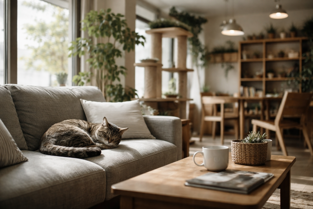 猫と暮らす部屋は、散らかるものだと思っていませんか。爪とぎ、キャットタワー、トイレ、フードボウル──猫用品は増える一方で、理想のインテリアとは程遠い現実に溜息をついている方も多いはずです。しかし近年、「猫がいるからこそ美しい空間」を実現するプロダクトとアイデアが急速に増えています。MYZOO、KARIMOKU CAT、KANADEMONO。デザインと猫の幸福を両立させるブランドが台頭し、猫と暮らす -